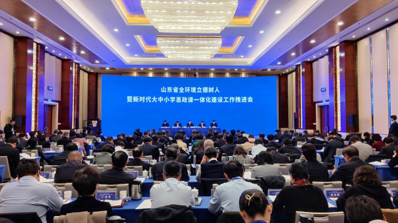 山东省全环境立德树人暨新时代大中小学思政课一体化建设工作推进会现场。