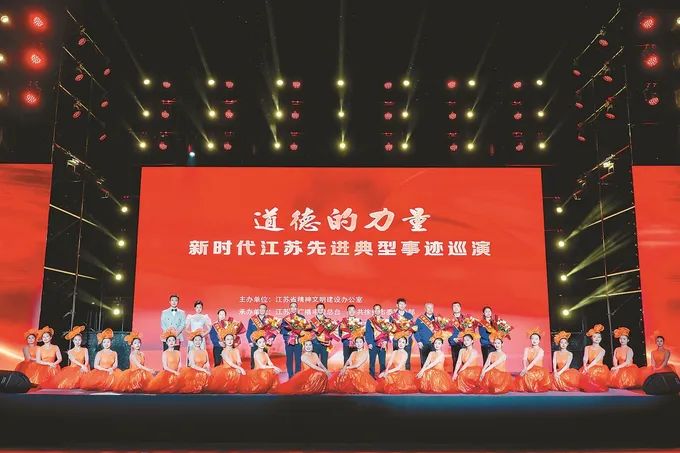“道德的力量”新时代江苏先进典型事迹巡演活动以党的十八大以来,江苏大地涌现出的道德模范、身边好人等先进典型为重点展示对象,创排出戏曲、歌舞、朗诵、情景短剧等百姓喜闻乐见的文艺节目,并以巡演方式走进城乡基层、走到群众身边,推动全社会见贤思齐、崇尚英雄、争做先锋。