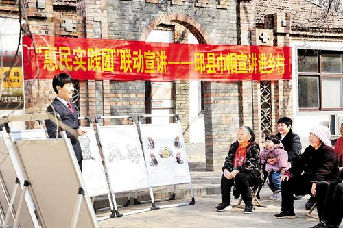 3月2日,邱县“巾帼宣讲团”成员在新鲜庄村,通过漫画宣讲好人好事、美德故事。