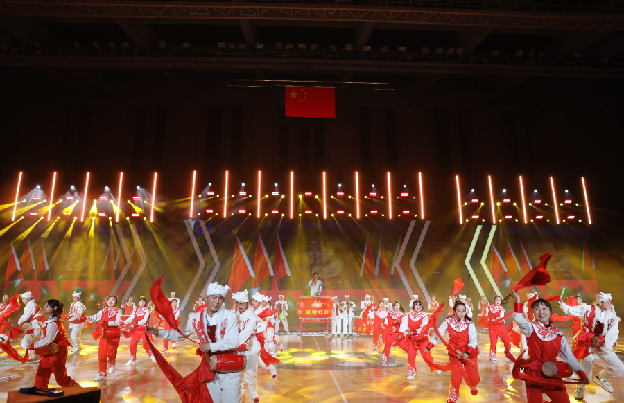 中国文明乡风大会“村BA”群众体育交流活动现场。图为陕西特色表演《安塞腰鼓》。张殊凡 摄