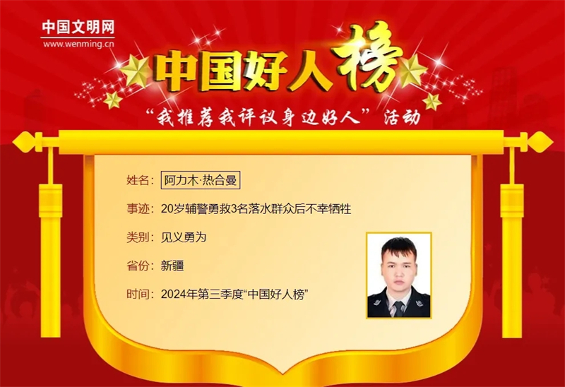 阿力木·热合曼荣登“中国好人榜”