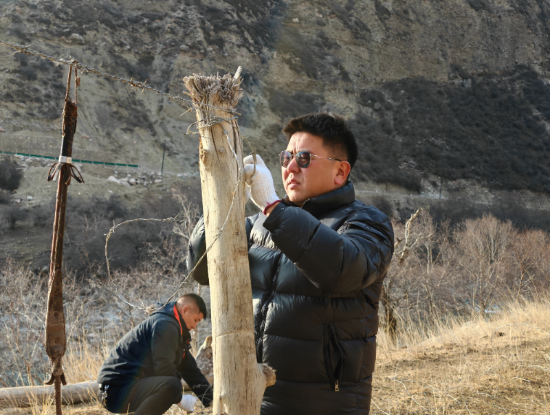 赛力克波力·库万德克(右)为牧民解决草场纠纷,拆除围栏。新疆生产建设兵团文明办供图