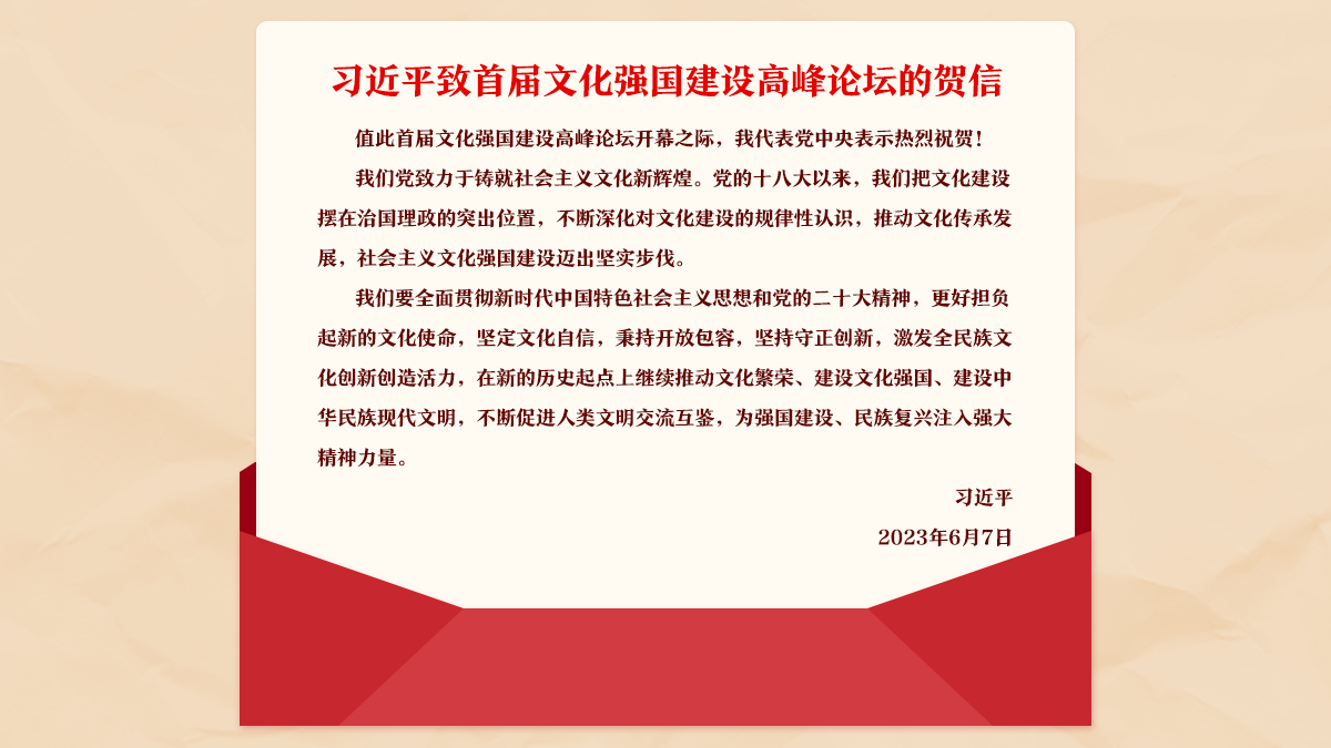 習(xí)近平致信祝賀首屆文化強(qiáng)國(guó)建設(shè)高峰論壇開幕強(qiáng)調(diào)