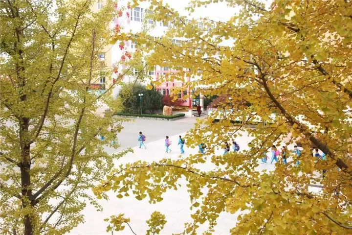 胶州市香港路小学校园银杏飘香。