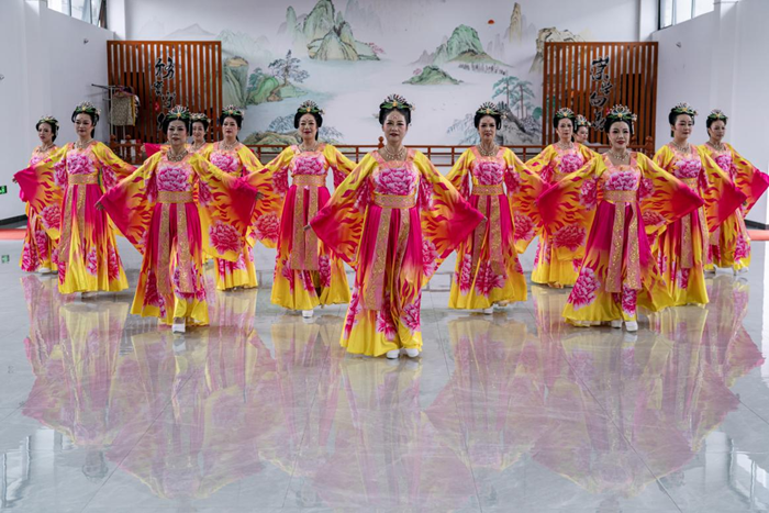 8月31日,浙江省台州市临海市白水洋镇桃源村的舞蹈队正在进行表演。新华网 钟奕 摄