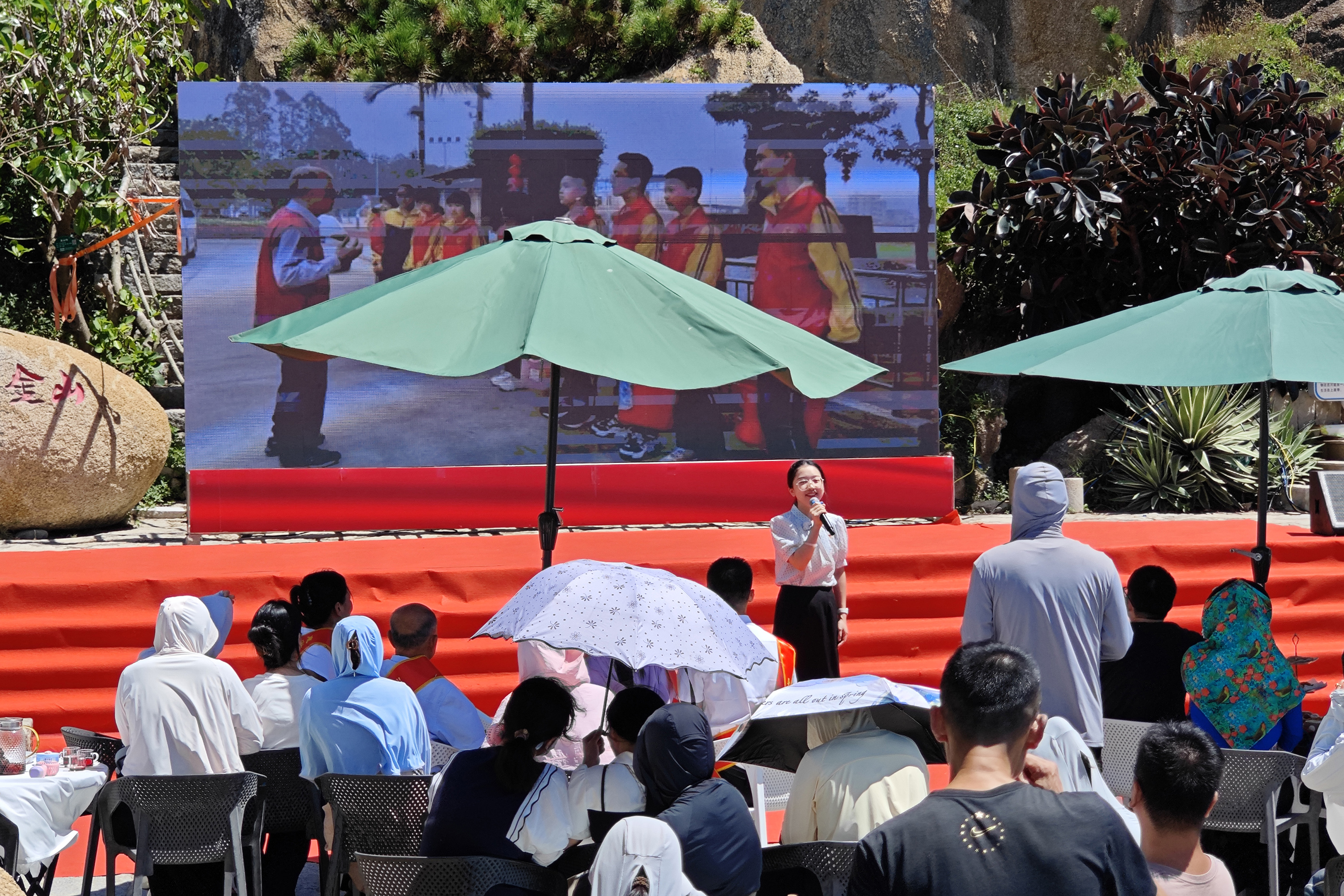 采访报道组一行抵达崇武古城时,古城内正在举办多场民俗活动。在崇武古城惠女风情园内,泉州市“凝聚榜样力量·践行核心价值观”主题宣讲惠安专场正在举行。五名时代新风传播人以宣讲员身份,讲述了道德模范的感人事迹,在场的游客无不为之动容。