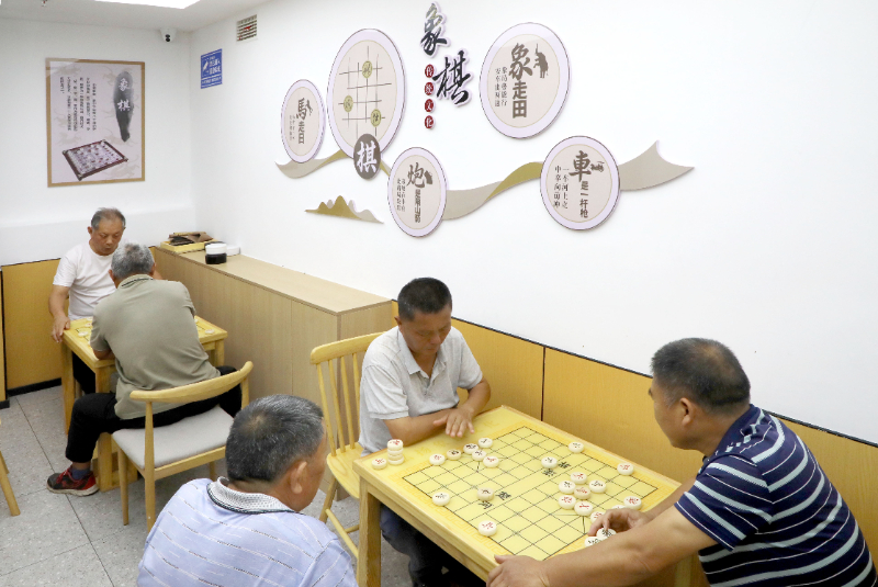 2024年9月28日,安徽省六安市叶集区史河街道柳林社区新时代文明实践站,居民在下象棋,丰富业余生活。新华网发 (田凯平 摄)