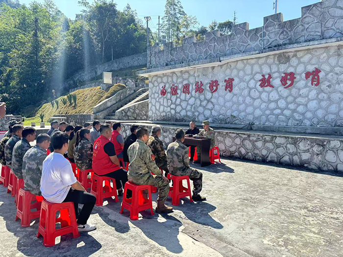 “我在这里戍边43年了,除了开展日常巡逻外,我还经常教导哨员们,要尽心尽责,经得住各种诱惑,守好我们的国土。”11月11日,百色市那坡县平孟镇弄汤村党总支部到天池国防民兵哨所开展“厚植爱国情怀 促进民族团结进步”主题党日活动,哨长凌尚前向前来参加活动的弄汤村“两委”、驻村工作队、党员讲述了他的守边故事。