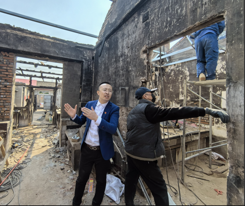 王官升到房屋失火的89岁老党员家中查看,为其重新修建,上下图为修建前后对比。(图片来源:王官升)