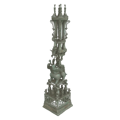 三星堆铜兽驮跪坐人顶尊铜像。资料图片